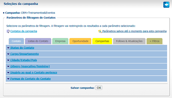É possível realizar tarefas adicionais dentro das Campanhas, como incluir Contatos selecionados em Listas de Contatos.