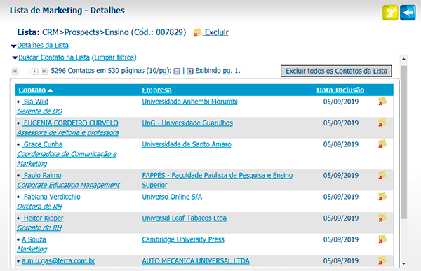 Os Contatos de sua base de dados podem ser armazenados conforme o perfil, a origem, o projeto, ou qualquer característica que você tenha definido para a Lista em questão. Sua necessidade e imaginação é que irão definir quais e quantas Listas de Contatos irá criar.