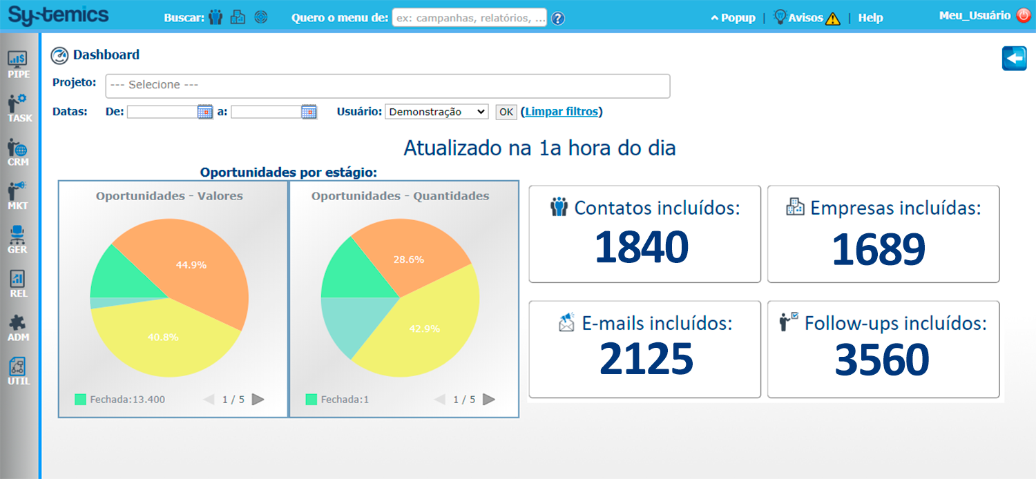 Gerenciar Contatos, Empresas e Oportunidades de negócio, com follow-ups lançados no Pipeline de Vendas